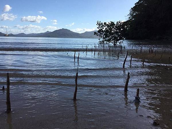 我們決定上島瞧瞧。沿岸望去都是紅樹林(mangrove forest), Legend Island的這一頭人煙稀少~